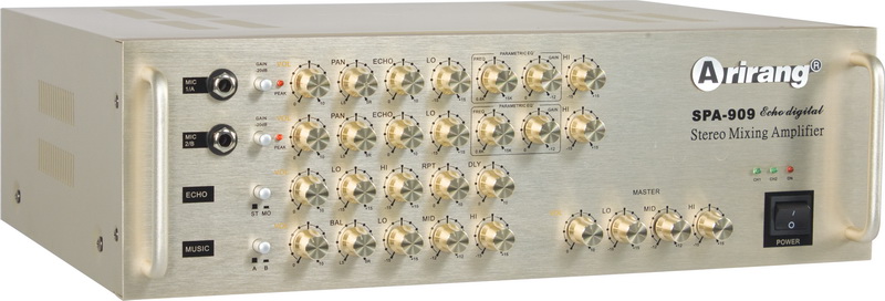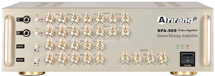 Amply Arirang SPA-909 sử dụng công nghệ Hàn Quốc nên bạn hoàn toàn có thể yên tâm về chất lượng âm thanh cũng như độ bền của sản phẩm. Bên cạnh đó với dải tần số rộng từ 20Hz - 24kHz mang lại âm thanh mạnh mẽ, trung thực sống động và tín hiệu nhiễu cực thấp. Bên cạnh đó Amply Arirang SPA 909P được trang bị 8 Transitor của Sanken chính hãng Nhật Bản cho âm thanh mạnh mẽ với 2 kênh tổng công suất lên đến 400W. Sản phẩm tích hợp mạch điều khiển âm sắc cho 2 kênh riêng biệt giúp bạn dễ dàng điều chỉnh âm thanh thích hợp.