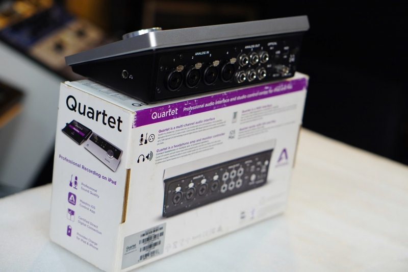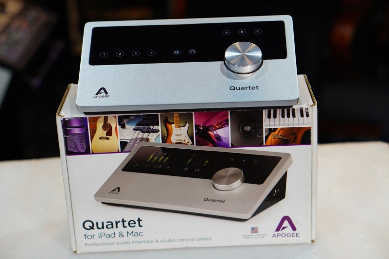 Apogee Quartet là giao diện âm thanh máy tính để bàn tối ưu và trung tâm điều khiển phòng thu để ghi âm chuyên nghiệp trên Mac và iPad. Được tạo ra cho các nhạc sĩ, nhà sản xuất và kỹ sư muốn có chất lượng âm thanh đỉnh cao và khả năng kiểm soát phòng thu trong một kiểu dáng máy tính để bàn nhỏ gọn, Quartet có tính năng chuyển đổi Apogee AD / DA huyền thoại, 4 tiền khuếch đại micrô đẳng cấp thế giới, USB MIDI I / O, công nghệ DAC ESS Sabre32 và điều khiển màn hình.