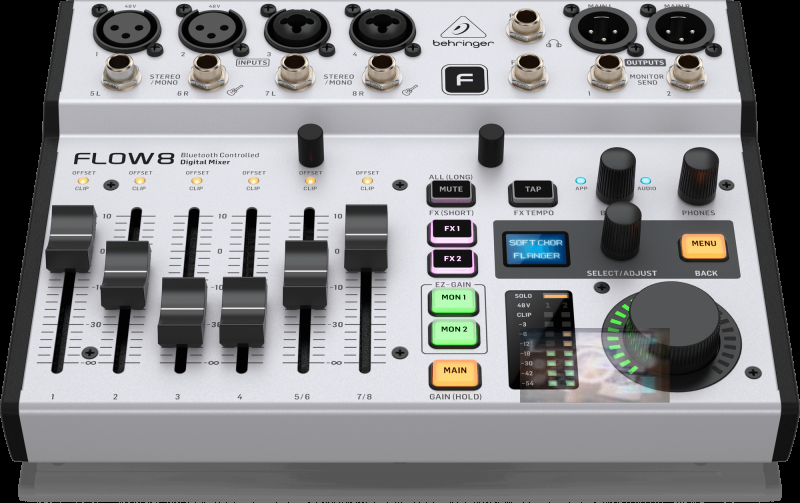 Với hai tiền khuếch đại micrô Midas và bộ xử lý 32 VFP bên trong, FLOW 8 gia nhập Dòng bảng điều khiển trộn kỹ thuật số X32, X-AIR và WING. Mặc dù hệ số hình thức và số lượng I/O được điều chỉnh cụ thể cho các thiết lập nhỏ hơn, nhưng mỗi kênh riêng lẻ đều cung cấp âm thanh trong như pha lê và theo kịp chất lượng âm thanh của các model tiền nhiệm. Tất cả các kênh đều cung cấp EQ tham số 4 băng tần, nén, cũng như gửi 2 FX và 2 monitor. Tất cả monitor và các bus chính đều có EQ tham số 9 băng tần và một bộ giới hạn để ngăn chặn âm lượng cao nhất không mong muốn trên loa của bạn.