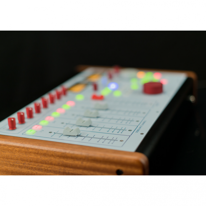 Fader âm thanh nổi 100mm cung cấp khả năng kiểm soát mức độ cho các bus âm thanh nổi chính, xuất ra cả tín hiệu màn hình bus âm thanh nổi và đầu ra âm thanh nổi chính. Để thêm khả năng nén và EQ vào các bus hỗn hợp, cũng có một bộ chèn được ghép nối với máy biến áp được tham gia bởi công tắc Chèn.
