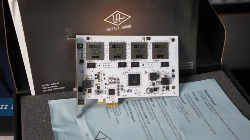 - Thẻ PCIe tăng tốc DSP hàng đầu cho Trình cắm được hỗ trợ bởi UAD được tải với 8 x Thiết bị Analog Bộ đồng xử lý dấu chấm động SHARC 21469 để tăng tốc trình cắm được hỗ trợ